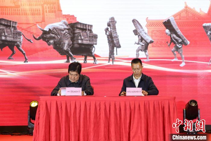 圖為四川省農(nóng)業(yè)農(nóng)村廳一級(jí)巡視員子克拉格(圖左)和西藏自治區(qū)農(nóng)業(yè)農(nóng)村廳副廳長羅丹(圖右)簽訂深化農(nóng)業(yè)合作框架協(xié)議現(xiàn)場(chǎng)。貢確 攝