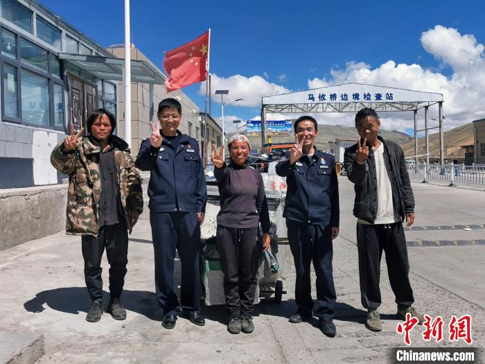 圖為馬攸橋邊境檢查站民警與徒步旅行團隊合影留念。申孟勇 攝