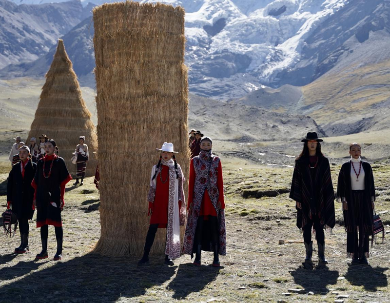 以雪域高原的藍天白云為幕,以廣袤無垠的高山草甸為毯,以金光燦燦的青稞裝飾為景……9月17日上午10時許, 來自上海金山的時裝品牌:沙涓“雪域·回響”喜馬拉雅大秀在西藏日喀則江孜縣乃欽康桑雪山下舉行,向現(xiàn)場觀眾呈現(xiàn)了一場西藏氆氌手工藝大秀,并通過視頻直播全球首發(fā),展現(xiàn)非遺復興。