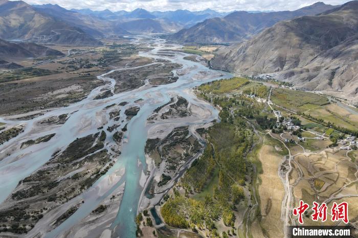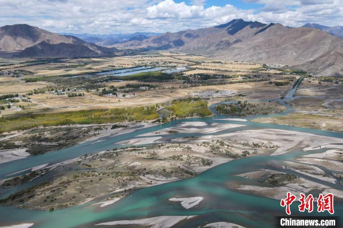圖為9月29日,航拍拉薩河達(dá)孜區(qū)段水系風(fēng)光。江飛波 攝