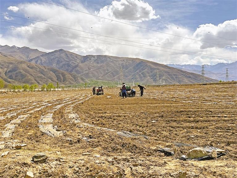 回憶起剛開荒時的情形,洛珠達(dá)瓦說:“我們每天組織公司全體職工和村民30多人,以及多臺挖掘機(jī)、破石機(jī)、拖拉機(jī)等機(jī)械設(shè)備,連續(xù)工作了1個多月。地底石頭較多,機(jī)械設(shè)備用壞了好幾臺。即使對土地進(jìn)行了多次翻耕,但土地沙化依然嚴(yán)重,無法種植莊稼。”