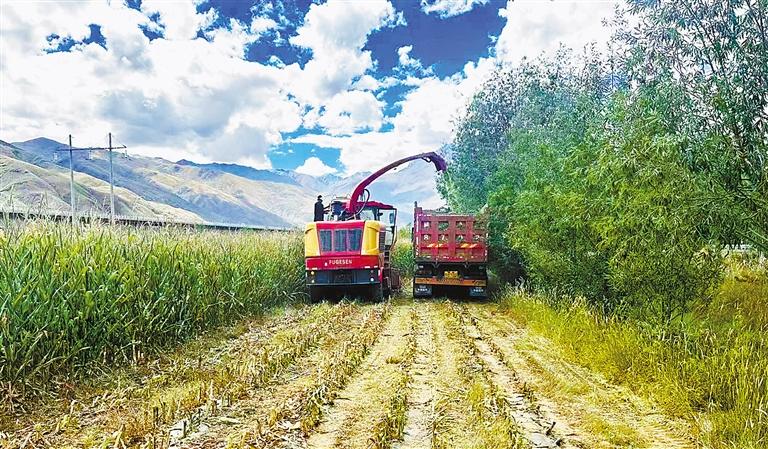 走在雅魯藏布江沿岸,成片的玉米地呈現(xiàn)眼前,讓人意想不到的是,半年前這里還是一片荒地。“我們今年種植玉米850多畝,其中,600多畝的玉米長勢良好,預(yù)計每畝可收玉米飼草2噸以上。”洛珠達(dá)瓦說。目前,玉米秸稈已陸續(xù)開始收割。