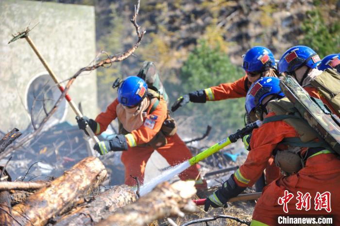 圖為演練現(xiàn)場(chǎng),森林消防進(jìn)行滅火。拉薩市森林消防大隊(duì) 供圖