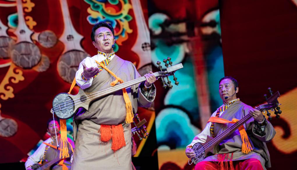 10月23日,老年文藝團的演員們彈奏扎念琴。新華社發(fā)(丁增尼達攝)