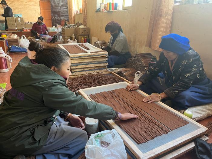 旦增曲扎的公司員工有近30人,大部分為尼木縣當(dāng)?shù)鼐用?。?jù)旦增曲扎介紹,廠子里的員工在農(nóng)忙時(shí)可以請(qǐng)假回家,農(nóng)閑時(shí)去廠里做香,既保證了農(nóng)業(yè)生產(chǎn),又能獲得一份穩(wěn)定的收入。