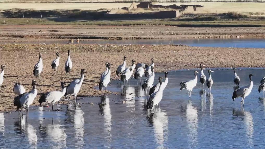 黑頸鶴是國家一級保護(hù)動物,主要棲息在海拔2500米至5000米的高原、草甸、沼澤地帶。拉薩北部的林周縣平均海拔約4200米,是黑頸鶴的主要越冬地之一。