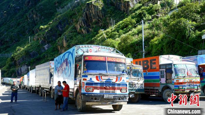 2018年7月26日,西藏自治區(qū)日喀則吉隆口岸,尼泊爾車(chē)輛排隊(duì)等待通關(guān)。(資料圖) 中新社記者 江飛波 攝