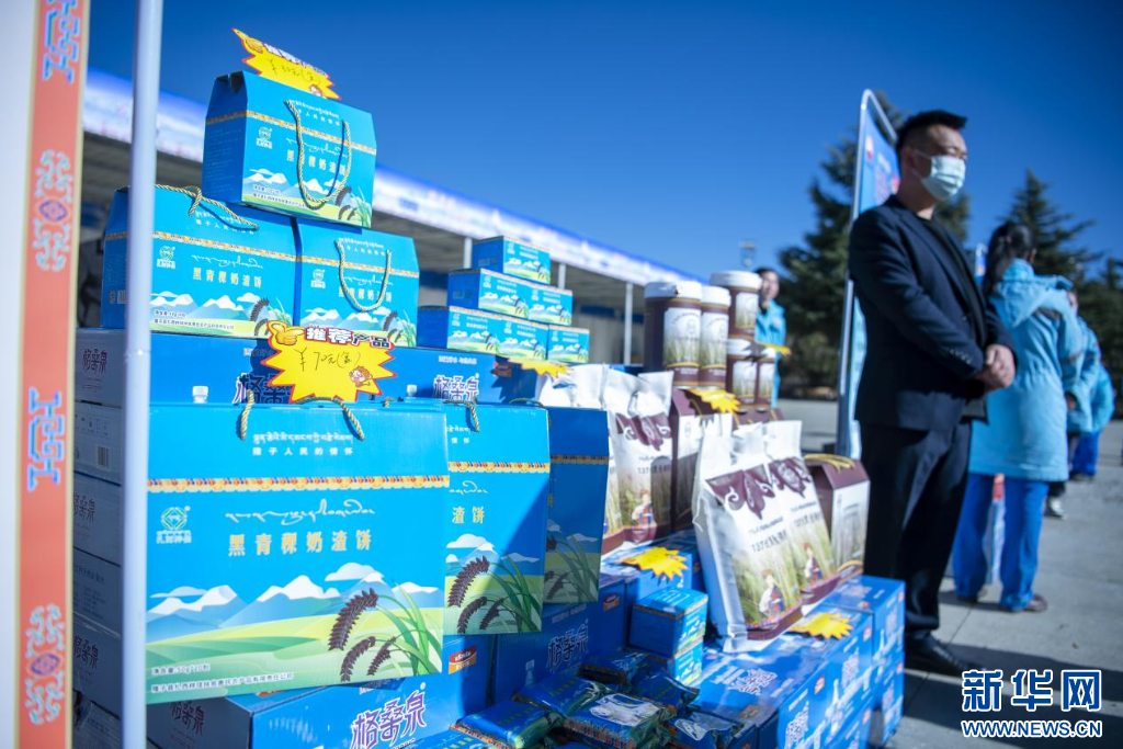 11月15日,“家鄉(xiāng)水·格桑泉”訂購(gòu)會(huì)特色產(chǎn)品展區(qū)。新華網(wǎng) 柑丹鴦琦 攝