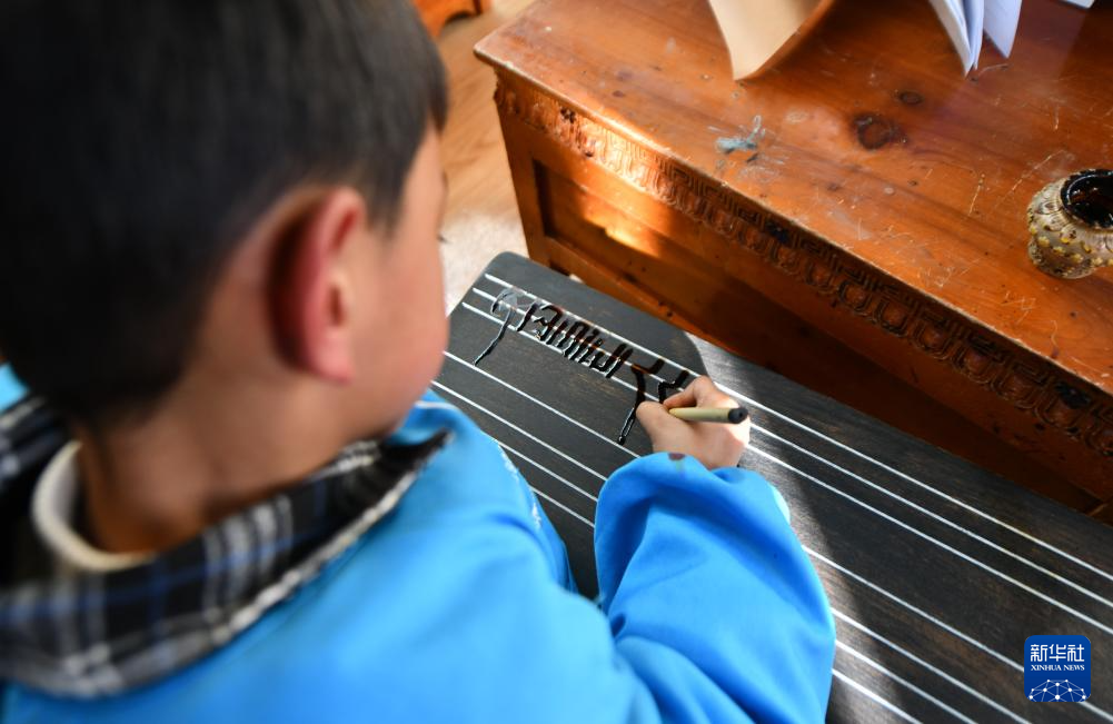 在拉薩的一家藏文書法興趣班里,學生使用“墻星”練習藏文書法(12月2日攝)。新華社記者 春拉 攝