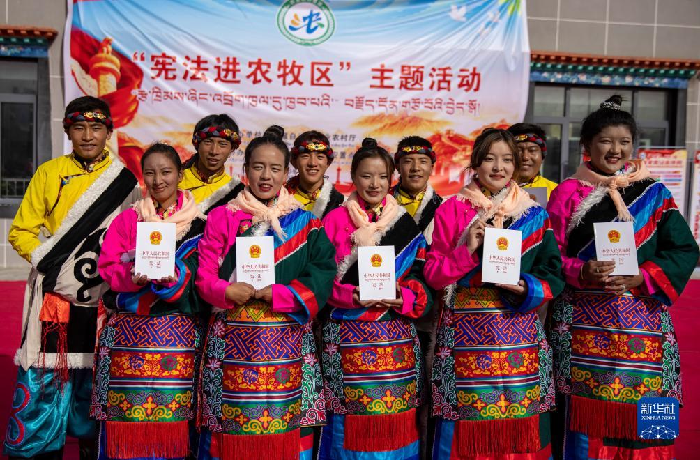 當日,“憲法進農(nóng)牧區(qū)”主題活動在西藏山南市貢嘎縣森布日生態(tài)搬遷安置點舉行,西藏自治區(qū)農(nóng)業(yè)農(nóng)村廳向當?shù)剞r(nóng)牧民群眾贈送了《中華人民共和國憲法》及相關法律書籍。森布日位于雅魯藏布江北岸,海拔約3600米,聚居著來自那曲雙湖、尼瑪、安多等縣的高海拔生態(tài)搬遷移民。