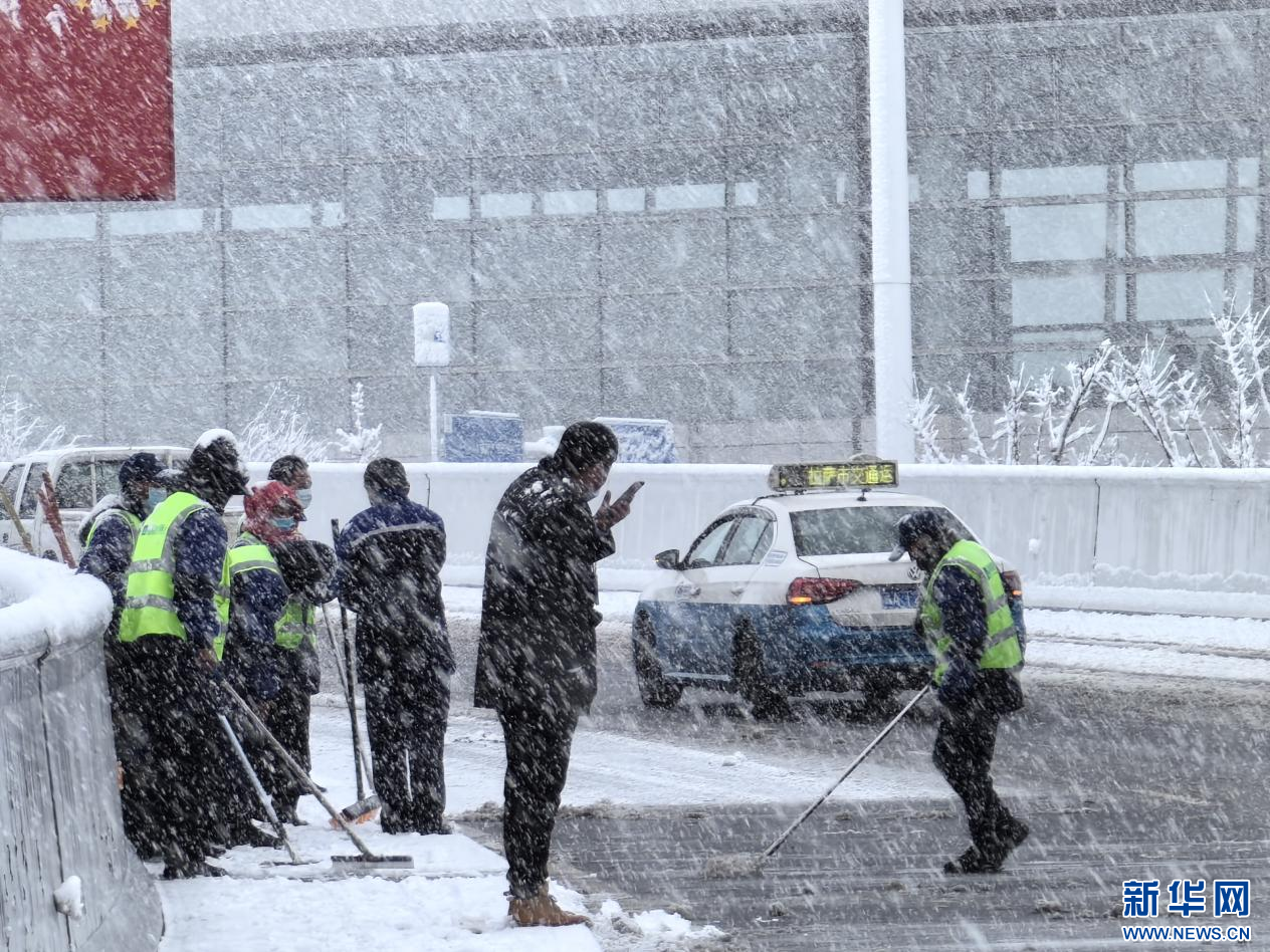 圖為工作人員在清理路面積雪。新華網(wǎng) 姚文杰 攝
