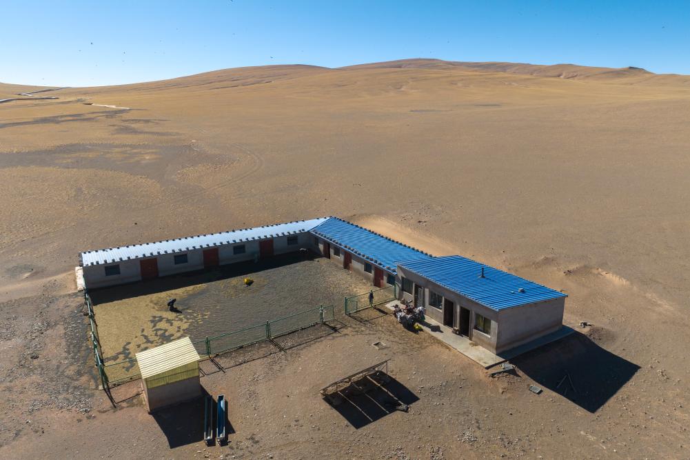 與舊羊圈相比,新羊圈以磚混結(jié)構(gòu)為主,棚頂結(jié)實、環(huán)境整潔,旁邊就有水井、飼草料倉庫,是羊群的“溫暖家園”。牧民們也不用住在帳篷里,而是能住在水泥磚房里。住房離羊圈很近,已經(jīng)通電,還可以存放一些生產(chǎn)工具和生活物資。