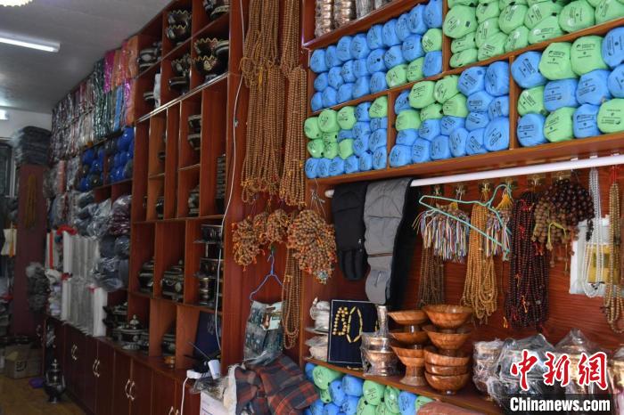 圖為尼泊爾商人貢桑卓瑪在位于中國(guó)西藏普蘭縣唐嘎國(guó)際邊貿(mào)市場(chǎng)的自家店內(nèi)。貢確 攝