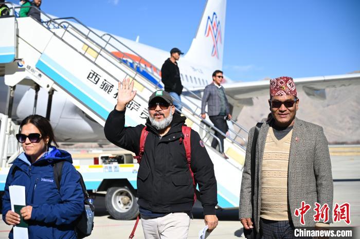 12月28日,從尼泊爾加德滿都抵達(dá)拉薩貢嘎國際機(jī)場的旅客。中新社記者 趙朗 攝