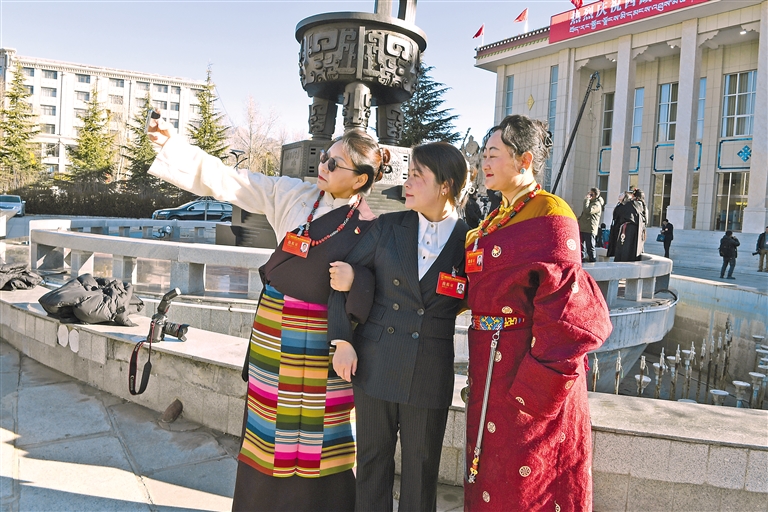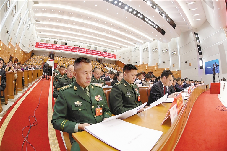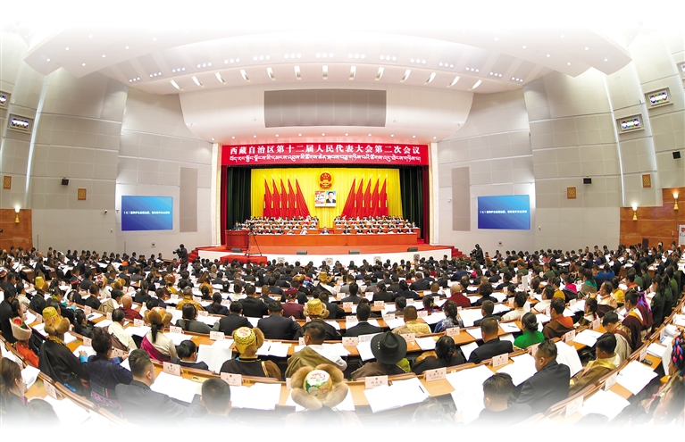 西藏自治區(qū)十二屆人大二次會(huì)議現(xiàn)場(chǎng)?!∮浾摺∨硕唷z