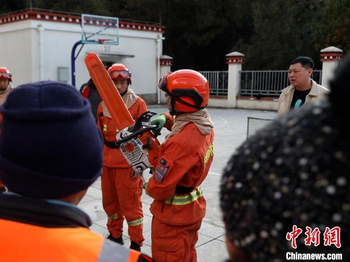 圖為消防指戰(zhàn)員理論講解。西藏林芝市森林消防支隊(duì)波密中隊(duì)供圖