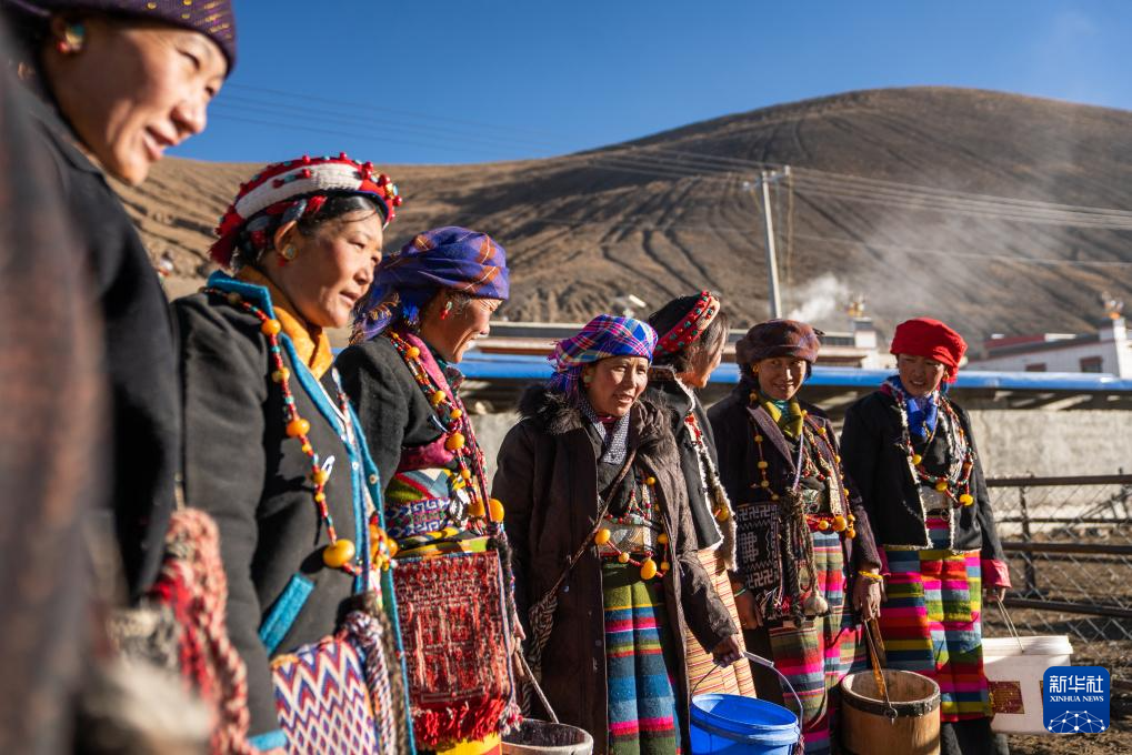 1月13日,時值西藏日喀則一帶傳統(tǒng)的農(nóng)家新年大年初二。坐落于群山間的日喀則市白朗縣東喜鄉(xiāng)思古龍村,延續(xù)傳統(tǒng)習俗,舉行擠牛奶、擲牛角等傳統(tǒng)文體比賽和翻桶接力賽等娛樂活動,以此慶祝新年。