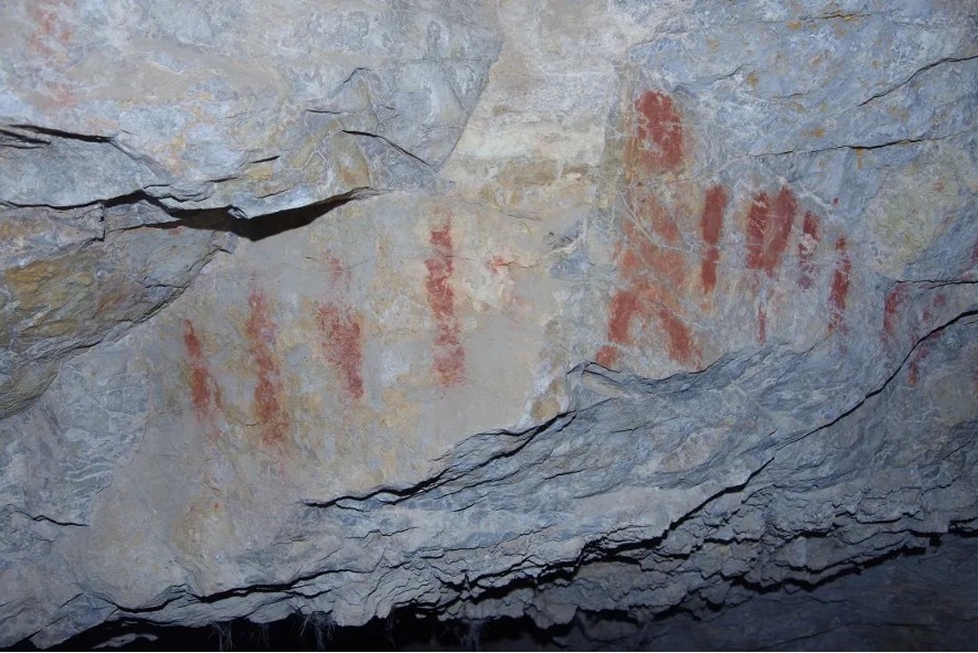 該洞穴的史前文化遺存,于2018年7月在西藏自治區(qū)文物保護(hù)研究所和中國科學(xué)院古脊椎動物與古人類研究所聯(lián)合組織的舊石器考古調(diào)查中發(fā)現(xiàn)。經(jīng)國家文物局批準(zhǔn),2018-2023年期間,考古隊連續(xù)開展了6個年度的正式考古發(fā)掘。 除了發(fā)現(xiàn)上萬件各類文化遺物,一號洞壁還發(fā)現(xiàn)了排列有序的豎條紋、人形輪廓、手掌以及太陽等以紅色赭石繪制的巖畫。
