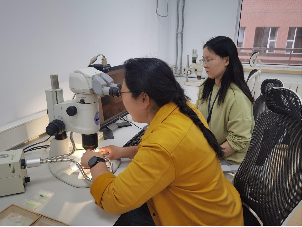 中國科學(xué)院古脊椎動物與古人類研究所張曉凌研究員在石器分析 總臺西藏總站記者2023年4月拍攝