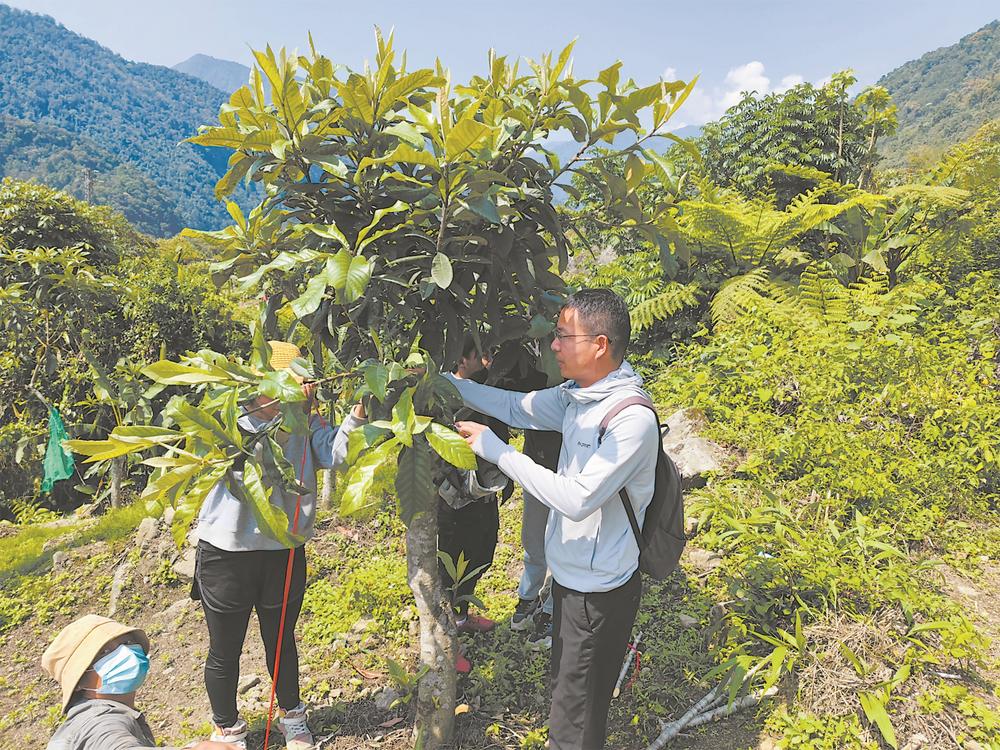 在西藏林芝市墨脫縣背崩鄉(xiāng)西讓村,福建省農(nóng)科院果樹研究所副研究員姜帆(右一)在傳授白肉枇杷種植技術(shù)。(資料照片,受訪者供圖)