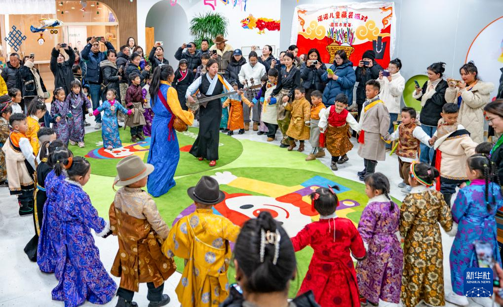 當(dāng)日,一場(chǎng)別開生面的“兒童藏裝派對(duì)”在拉薩市一家兒童書店舉行,老師在派對(duì)上向孩子們講解藏歷新年的傳統(tǒng)習(xí)俗,還有扎念琴表演、做手工、吃“古突”、手偶講故事等內(nèi)容,豐富了孩子們的寒假生活,迎接即將到來的藏歷新年。