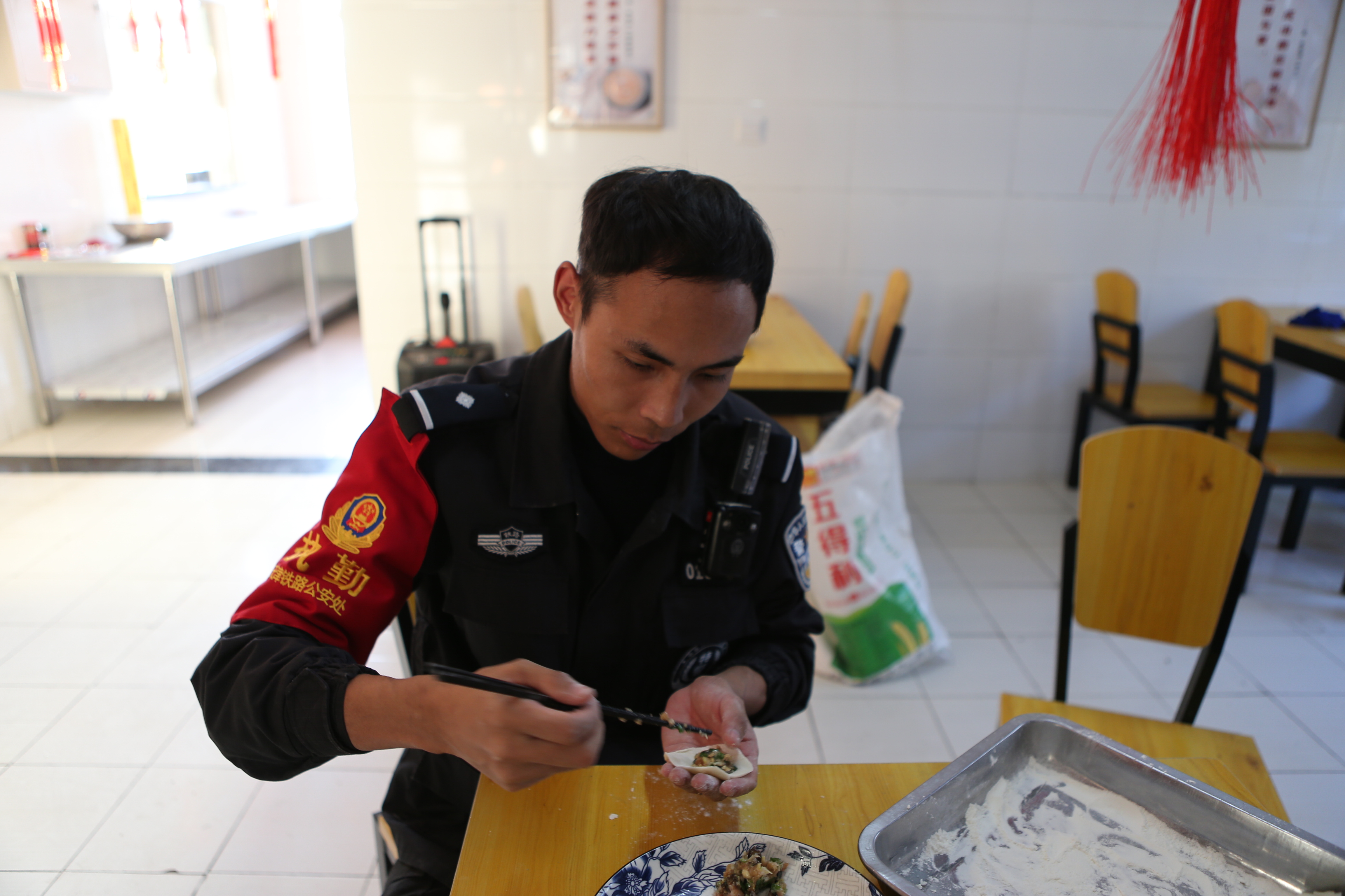 藏語(yǔ)里,警察被稱為“泥朵巴”(音譯)。北京鐵路公安局天津公安處特警支隊(duì)有兩名藏族“泥朵巴”,洛桑單巴和旺杰。大年三十除夕夜,他們和同事們一起歡快地包著餃子,洛桑說(shuō):“今年的農(nóng)歷春節(jié)與藏歷春節(jié)恰巧是同一天,我們今天也是過(guò)節(jié)啦!”
