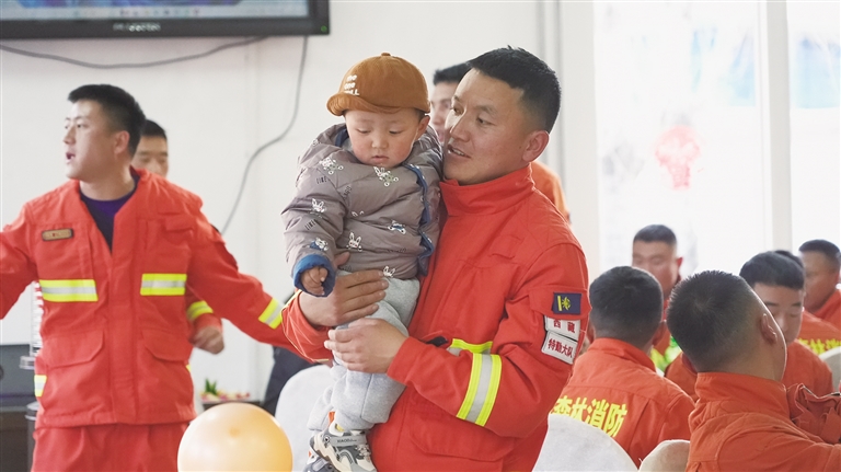 “沒事!我?guī)Ш⒆觼砜茨恪!边@是仁增多吉愛人在電話中的話語。春節(jié)前夕,仁增多吉的愛人和兒子來到了專門為他們安排的公寓房里。房間里溫馨而舒適,配齊了水、電、氣等生活設施,還購買了米面油等生活必需品?!半m然結婚4年了,這還是第一次在你們單位過年,大隊想我們所想,讓我們一家人團聚,我們也深深地感受到了大隊對一線消防員的關懷?!比试龆嗉膼廴苏f道。