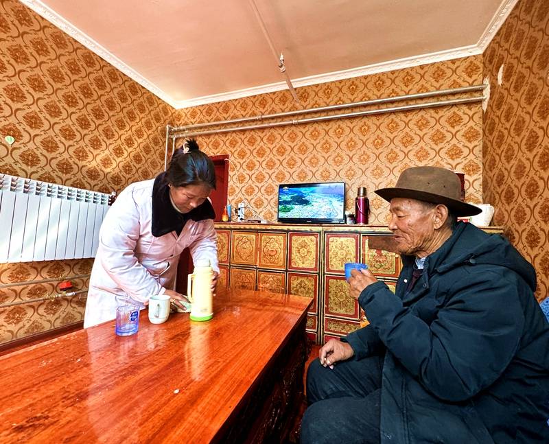 在75歲的瓊拉家里,干凈整潔的一居室暖烘烘的,一進門眼鏡瞬間起了霧?!敖衲昙依锿伺瘹?,過上了一個暖烘烘的新年,暖了身子,也暖了咱們老人們的心吶!”瓊拉老人高興地摸著掛在墻上的暖氣片說道,這都是共產(chǎn)黨的恩情,讓我們這些孤寡老人過了一個溫暖祥和的藏歷新年。