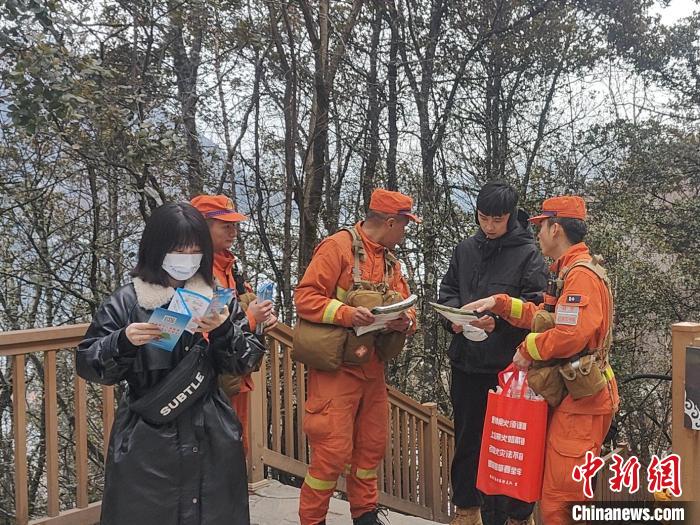“叔叔您好,您在游玩過程中一定要注意安全用火,如發(fā)現(xiàn)火情,請在確保自身安全的前提下?lián)艽?2119報警電話……”森林消防指戰(zhàn)員在人流密集的景區(qū)設(shè)立執(zhí)勤點,向來往游客發(fā)放防火常識宣傳手冊,面對面地科普森林防火常識,嚴(yán)格管控野外火源、及時排除火險隱患。