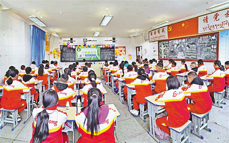 在林芝市第二小學(xué),學(xué)校布置了喜慶的龍年裝飾,教室文化墻裝點一新,老師們分發(fā)起糖果、牛奶。溫暖的“小驚喜”迅速調(diào)動起學(xué)生返校的好心情;波密縣完全小學(xué)利用寒假對所有教室進(jìn)行了粉刷、維修,對學(xué)生食堂進(jìn)行了升級改造,干凈、整潔的校園,讓學(xué)生們格外激動……“今天很開心,見到了老師和同學(xué),也見到了更美麗的校園。新的學(xué)期,我要繼續(xù)做好班干部工作,取得更大的進(jìn)步。”林芝市第二小學(xué)學(xué)生索朗次仁信心滿滿地說。