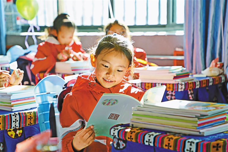 阿里地區(qū)陜西實驗學(xué)校開學(xué)第一天,孩子們開心閱讀新課本。記者 洛桑旦增 達(dá)珍 永青 攝
