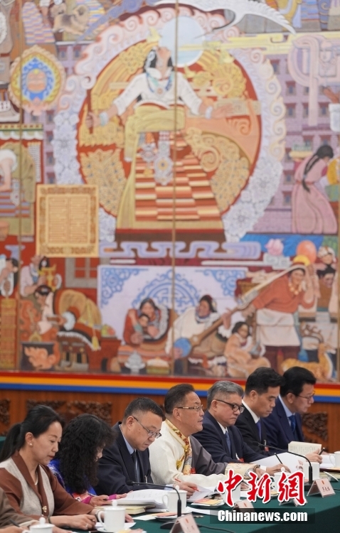 3月6日,出席十四屆全國人大二次會議的西藏代表團在北京人民大會堂西藏廳舉行開放團組會議,審議政府工作報告并回答記者提問。