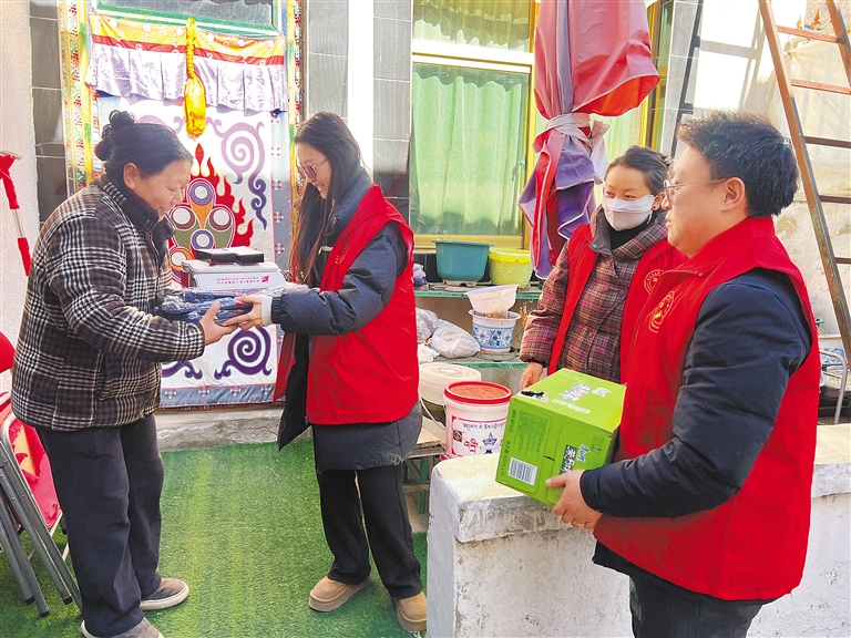 在嘎巴村熱組的困難戶邊巴家中,志愿者們?cè)谒蜕狭藢?shí)用的慰問(wèn)品后,為他詳細(xì)解讀了與他生活息息相關(guān)的醫(yī)保等相關(guān)政策。志愿者的關(guān)懷和服務(wù)讓他感動(dòng),邊巴說(shuō):“你們就是當(dāng)代的活雷鋒,謝謝你們!”