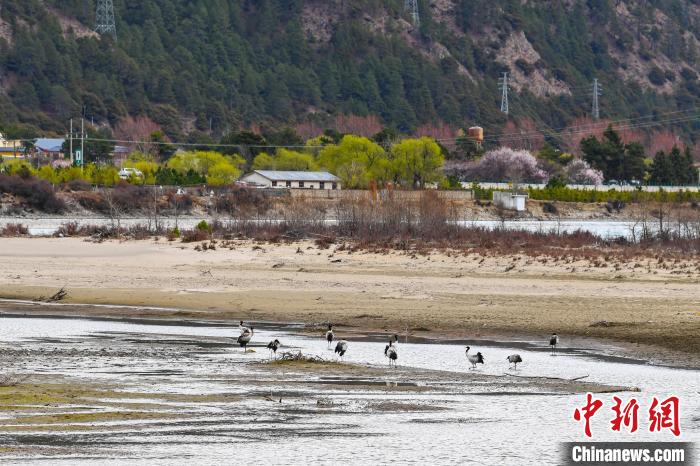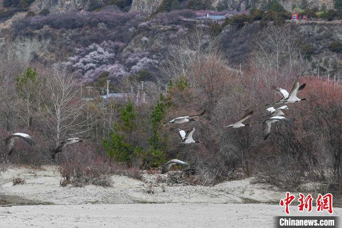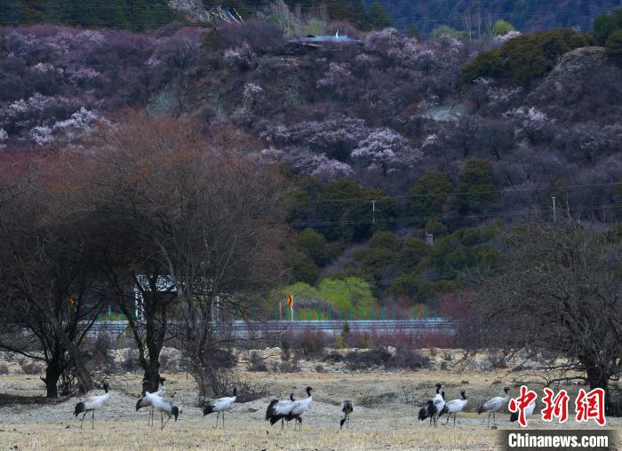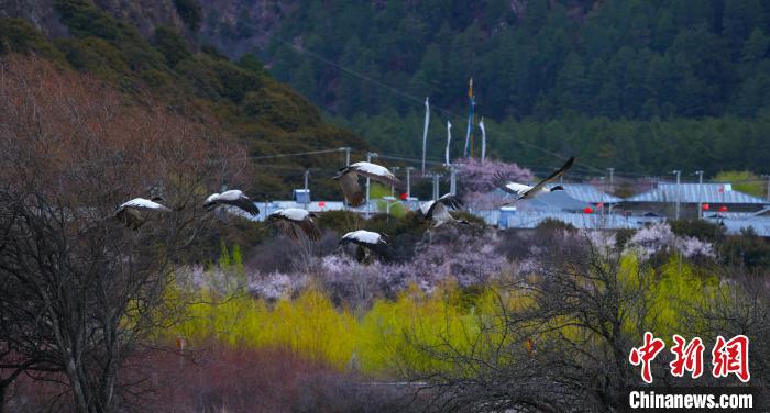 3月30日,在西藏林芝市巴宜區(qū)更章門巴民族鄉(xiāng)境內(nèi),黑頸鶴在村莊里、盛開的桃花前、雪山下翩翩起舞,形成一幅絕美的自然畫卷。黑頸鶴,被譽(yù)為“鳥類大熊貓”,是國家一級保護(hù)野生動(dòng)物,也是世界上唯一在高原地區(qū)生長和繁殖的鶴類。近年來,西藏不斷加大黑頸鶴生存環(huán)境保護(hù)力度。據(jù)2022年冬季越冬黑頸鶴種群數(shù)量調(diào)查顯示,在西藏越冬的黑頸鶴種群數(shù)量達(dá)11175只,種群數(shù)量持續(xù)增長,并在西藏全區(qū)均有分布,其瀕危等級也從“易危”降為“近?!?。在林芝,黑頸鶴在桃花與雪山間自由翱翔,展現(xiàn)了人與自然和諧共處的美好場景。