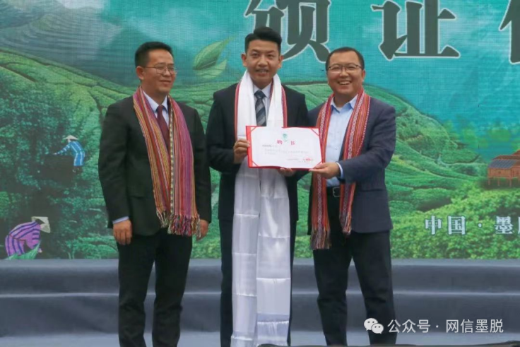 伴隨著春風(fēng)中浸染的裊裊茶香,開(kāi)幕式上的一段視頻吸引了觀眾們的注意,視頻中丹臻群佩在央視主持人大賽的舞臺(tái)上向全國(guó)人民展示了墨脫通車(chē)十年以來(lái)的壯美巨變,講述了茶葉為墨脫人民的生活帶來(lái)的嶄新面貌,他的傾情推介帶領(lǐng)著觀眾再次感受了墨脫的極致美景,體會(huì)了新時(shí)代墨脫人民欣欣向榮的美好生活。在現(xiàn)場(chǎng),林芝市委常委、墨脫縣委書(shū)記符永波為丹臻群佩頒發(fā)“中國(guó)·墨脫文化旅游形象大使”證書(shū)。隨后,符永波宣布,2024年墨脫縣首屆茶文化旅游季正式開(kāi)幕!