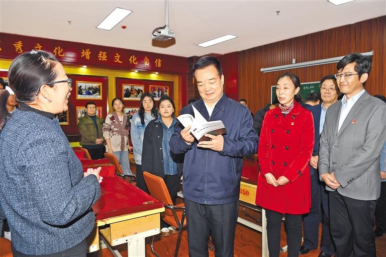 調研中,王君正指出,師范院校承擔著為中小學培養(yǎng)師資的重任,責任艱巨、使命光榮。要堅持正確辦學方向,自覺用習近平新時代中國特色社會主義思想指導學校建設辦學實踐,堅持不懈用馬克思主義中國化最新成果武裝廣大師生頭腦。堅持立德樹人根本任務,圍繞為黨育人、為國育才,遵循教育規(guī)律和人才成長規(guī)律,努力培養(yǎng)德智體美勞全面發(fā)展的社會主義建設者和接班人。進一步加強師范教育體系建設,聚焦經濟社會發(fā)展新任務,積極推進師范教育教學改革,突出需求導向,促進教育鏈與人才鏈、產業(yè)鏈、創(chuàng)新鏈深度融合,提高辦學質量和辦學效益。高度重視教師隊伍建設,把師德師風建設擺在首要位置,提高教師培養(yǎng)培訓質量,培養(yǎng)造就一支師德高尚、業(yè)務精湛、結構合理的高素質專業(yè)化教師隊伍。