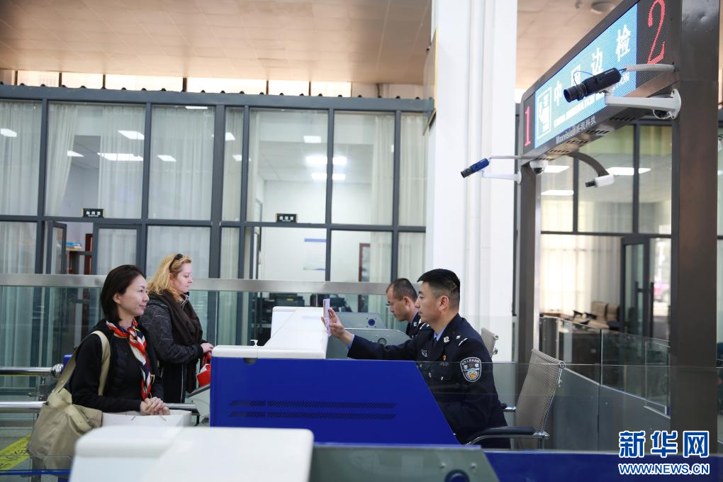 吉隆出入境邊防檢查站民警正在驗(yàn)放出境旅客(5月1日攝)。肖富貴 攝