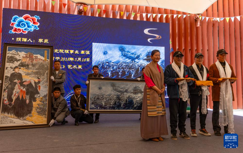 5月18日,吳雨初的友人為西藏牦牛博物館捐贈(zèng)瓷畫《“亞格博”在西藏》。新華社記者 姜帆 攝