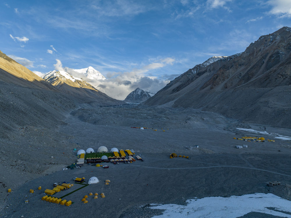 珠峰登山大本營(yíng)(5月21日攝,無(wú)人機(jī)照片)。新華社記者 孫非 攝
