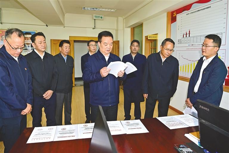 5月29日上午,自治區(qū)黨委書記王君正前往自治區(qū)市場監(jiān)督管理局、自治區(qū)商務(wù)廳等單位調(diào)研。這是王君正在自治區(qū)商務(wù)廳認(rèn)真聽取全區(qū)商務(wù)工作情況介紹。本報記者 旦增西旦 攝