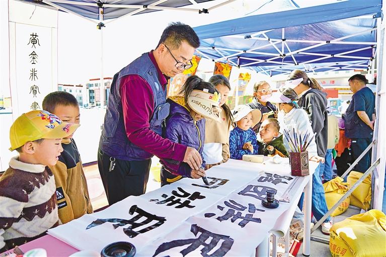 在阿里地區(qū)“文化和自然遺產(chǎn)日”活動中,孩子們在感受書法魅力。記者 達(dá)珍 洛桑旦增 攝