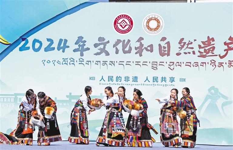8日上午,自治區(qū)2024年“文化和自然遺產(chǎn)日”主場活動在日喀則市舉行,包括“非遺歌舞專場演出”“非遺展示展銷”“非遺獻(xiàn)禮·電商助力直播帶貨”“鑄牢中華民族共同體意識·夏魯文物特展”等。來自各有關(guān)部門、地市代表,國家級非物質(zhì)文化遺產(chǎn)代表性項目展演人員齊聚珠峰文化旅游創(chuàng)意產(chǎn)業(yè)園區(qū),用天籟之音、特色舞蹈禮贊新時代,傳承弘揚中華優(yōu)秀傳統(tǒng)文化,共享文化遺產(chǎn)保護(hù)和發(fā)展成果。除日喀則主會場系列宣傳活動外,全區(qū)還將陸續(xù)舉辦上百場豐富多彩的線上線下活動。
