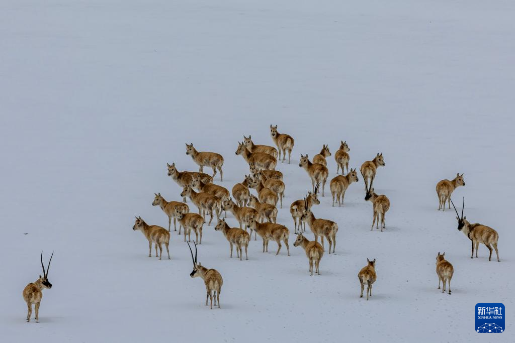 這是在色林錯湖畔拍攝到的藏羚羊(1月5日攝)。 新華社記者 姜帆 攝
