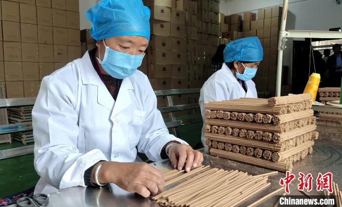 “我們農(nóng)閑時(shí)就會(huì)來這里制作藏香?!睅孜宦耦^工作的婦女不善言談,但她們數(shù)線香、捆藏香流程十分嫻熟,她們足不出村實(shí)現(xiàn)就業(yè)增收。