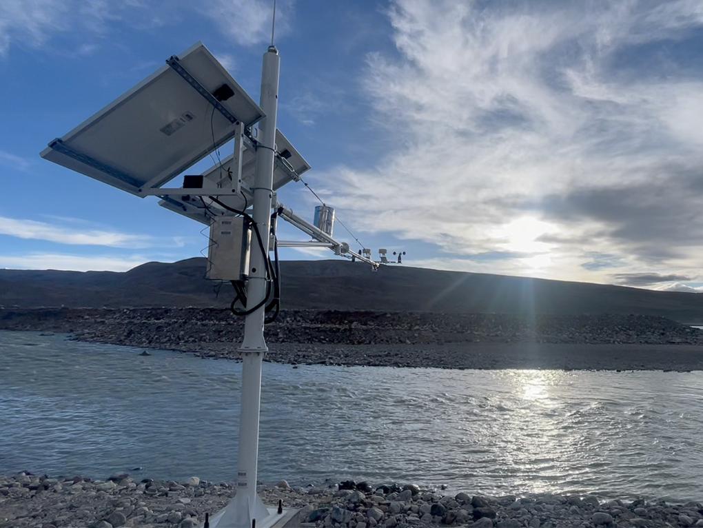 考察團(tuán)隊(duì)在措嘉冰川安裝的新設(shè)備,以檢測冰川融水的水位和所在地區(qū)的氣象條件(6月23日攝)。新華社記者 邱星翔 攝