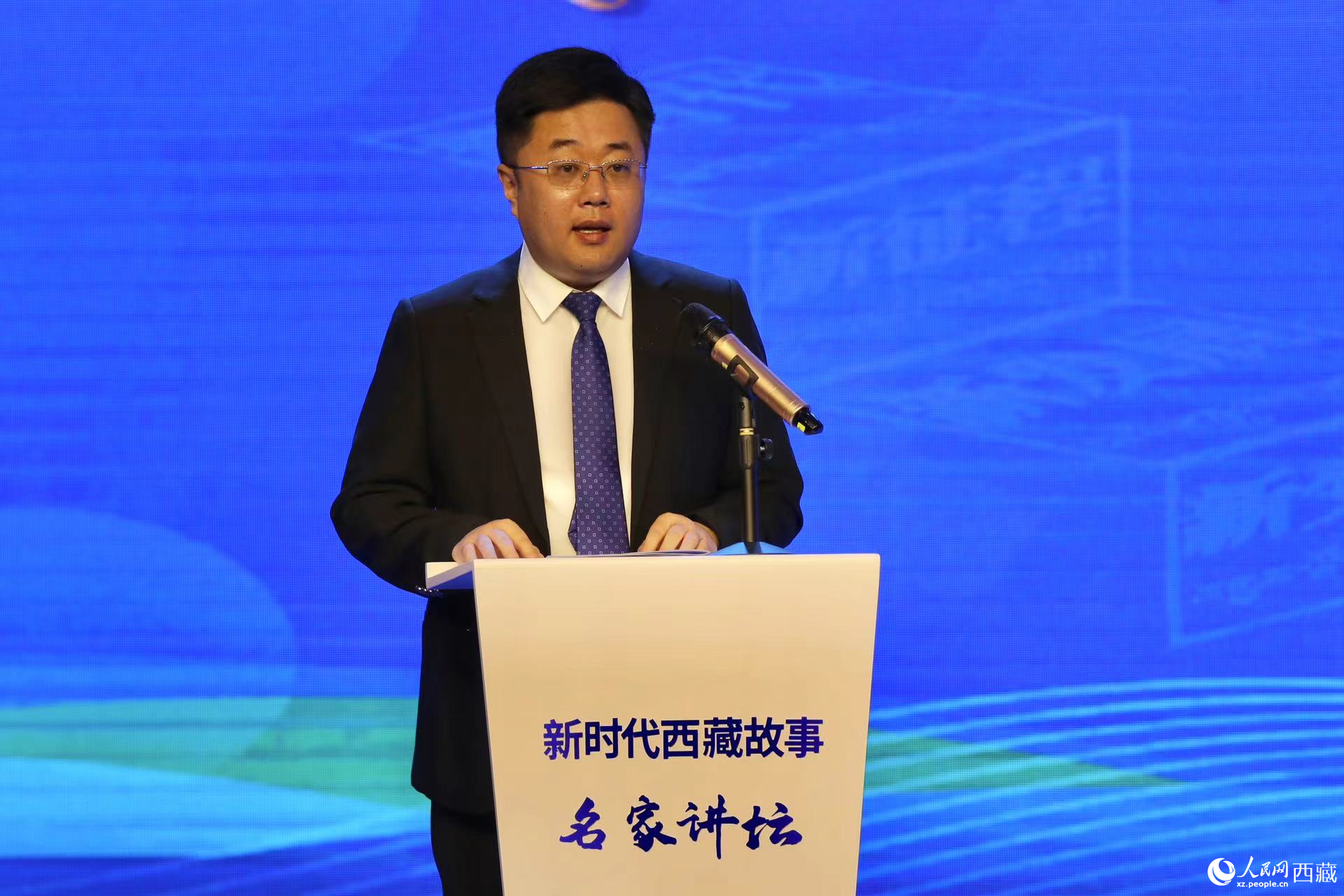 西藏自治區(qū)黨委宣傳部副部長,西藏自治區(qū)社會(huì)科學(xué)院黨組書記,中央和國家機(jī)關(guān)第七批、第八批援藏干部孫向軍作主題演講。人民網(wǎng)記者 次仁羅布攝