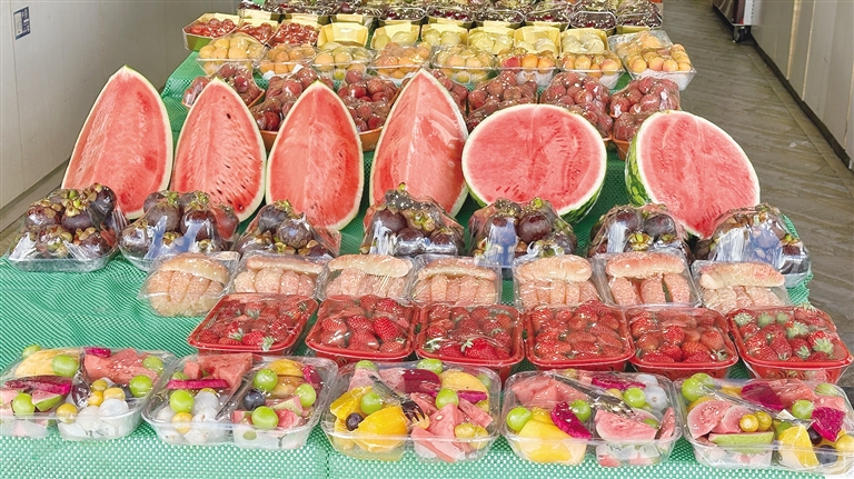 在納金綜合批發(fā)商貿(mào)城內(nèi),時(shí)令水果成為了絕對(duì)的“主角”,攤位上擺放的各類水果琳瑯滿目,令人目不暇接。過往的居民紛紛駐足挑選,享受這場(chǎng)由水果帶來的味蕾盛宴?!白罱迈r水果上市了,我想嘗嘗看?!崩_市民張女士一邊挑選著西瓜,一邊對(duì)記者說,“老板說這種麒麟西瓜無籽皮薄,口感清甜,而且價(jià)格親民,我打算買一個(gè)回家給孩子嘗嘗?!?/p>