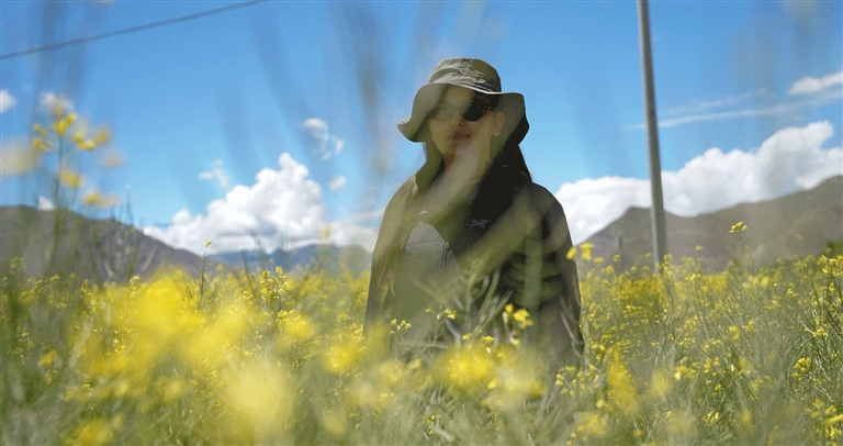 7月初,記者一行驅(qū)車從拉薩出發(fā),在開(kāi)往錯(cuò)那市的路上,經(jīng)過(guò)了瓊結(jié)縣百畝油菜花和隆子縣錯(cuò)落有致的油菜花田。烈日下,油菜花是這片大地的“主角”,是山南市每年盛夏從不缺席的芬芳。一路走來(lái),油菜花肆意地盛開(kāi)在道路兩旁、村莊里、半山腰……微風(fēng)拂過(guò),花朵搖曳生姿綻放著,從稍遠(yuǎn)處看,俗坡奴村錯(cuò)落分布在黃綠交錯(cuò)的田野中,仿若一幅美麗清新的鄉(xiāng)村田野詩(shī)畫(huà)。此時(shí),看風(fēng)景的行人紛紛鉆進(jìn)花田中,仿佛是跟油菜花“爭(zhēng)芳斗艷”。