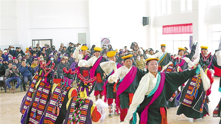 甲瑪鄉(xiāng)諧欽隊(duì)在非遺巡展活動上表演諧欽。