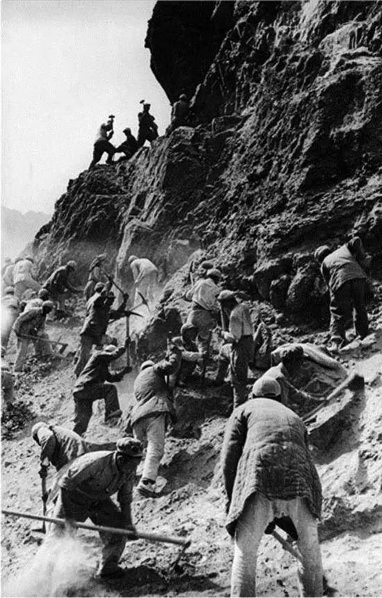 修筑川藏公路二郎山段的場景。